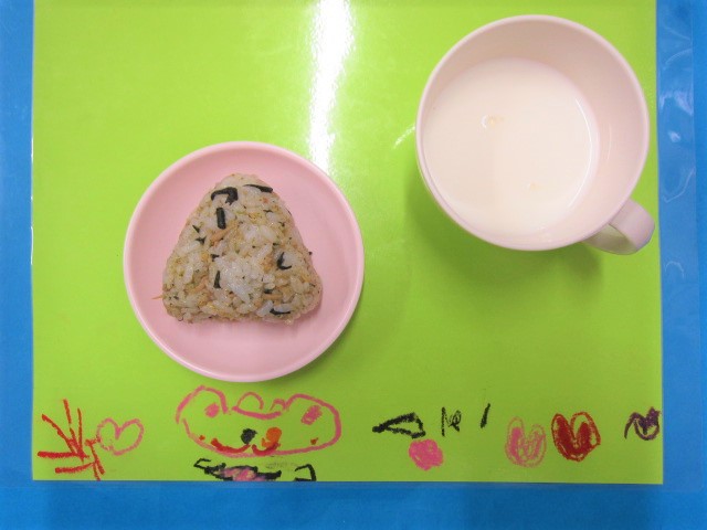 ホームきょうの給食 12/10 今日の給食 2021年12月10日 子どもたちが大好きな給食やおやつを毎日紹介しています! 【幼児食・乳児食】 昼食 茶飯おでん鶏のコーンフレーク焼きキャベツの昆布和えみかん 😊本日のマットはくるみ組さんに 書いてもらいました。 3時のおやつ 牛乳骨太おにぎり 10時おやつ(乳児) ・ジョア白ぶどう
