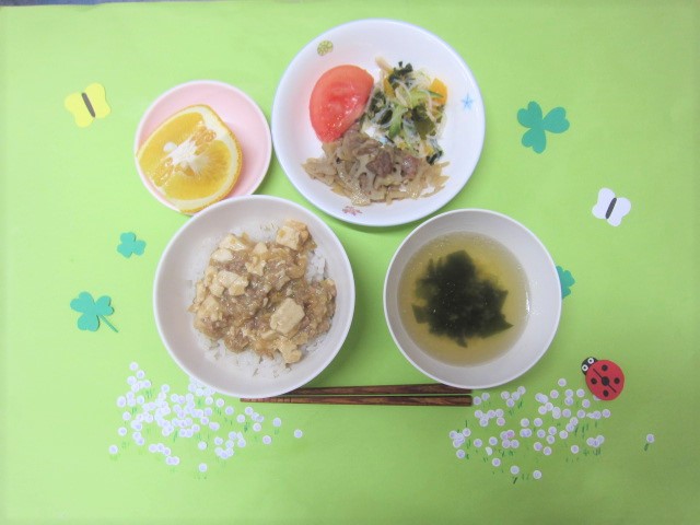 ホームきょうの給食 4/8 今日の給食 2022年4月8日 子どもたちが大好きな給食やおやつを毎日紹介しています! 【幼児食・乳児食】 マーボー麦丼わかめスープ豚肉れんこんバンサンスートマト甘夏 🥰本日も良く食べてくれました♪ 😘こちらで紹介している給食で 使用している 【ランチョンマット】を 只今、幼児クラスさんに発注して います(笑) (今年度も、幼児クラスさんに絵を 描いてもらいます) 出来上がるまで、お楽しみに…♪ 3時のおやつ 牛乳仏手餅 🥰おかわりもペロリ♪ 大人気でした😊 10時おやつ(乳児) ・牛乳