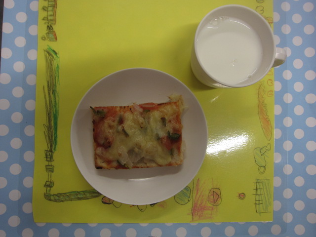 ホームきょうの給食 7/ 27 今日の給食 2023年7月27日 子どもたちが大好きな給食やおやつを毎日紹介しています! 【幼児食・乳児食】 昼食 ・そぼろごはん ・みそ汁 ・スタミナサラダ ・トマトの塩こうじ和え ・すいか 本日のランチョンマットは・・・ 【まつ組】さん作です★ 【くるみ組】さんでは ”たくさん食べて怪獣をやっつけよう ビーム作戦”☆★☆彡 を、絶賛実行中です。 だんだんと佳境に入ってきました。 この先のミッションとは?? 😍野菜たっぷりのメニューでしたが 良く食べてくれました(^▽^)/ 3時のおやつ 牛乳 ピザトースト 10時おやつ(乳児) ・野菜ジュース