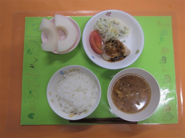 ホームきょうの給食 9/ 12 今日の給食 2023年9月12日 子どもたちが大好きな給食やおやつを毎日紹介しています! 【幼児食・乳児食】 昼食 ・ごはん ・みそ汁 ・油淋鶏(ユーリンチー) ・春雨サラダ ・トマト ・梨 本日のランチョンマットは・・・ 【くるみ組】さん作です★ 【くるみ組】さんでは ”たくさん食べて怪獣をやっつけよう ビーム作戦”☆★☆彡 を、絶賛実行中です。 次のステージでは ラスボス登場なのか…?‼ いよいよ・・・★ 🥰どのクラスも良く食べてくれました★ 3時のおやつ 牛乳 ホットケーキ 🥰みんな大好き❤ 10時おやつ(乳児) ・牛乳