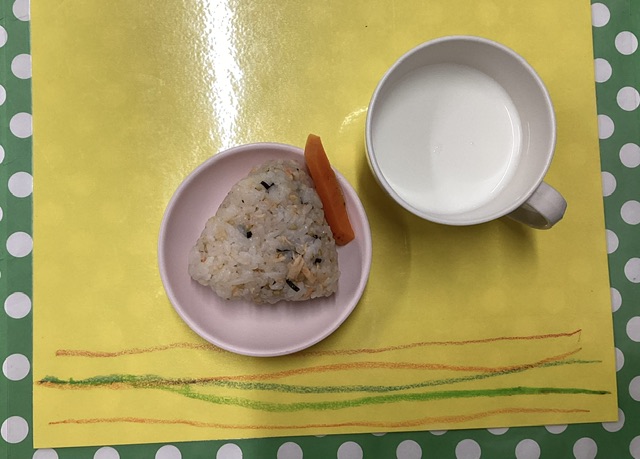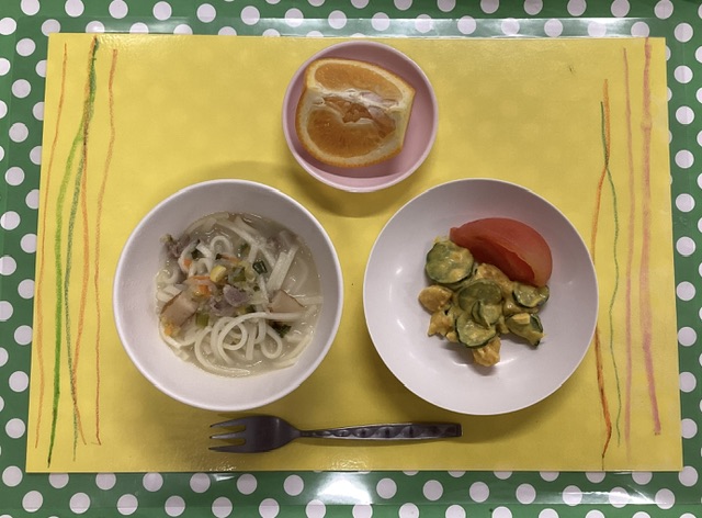 ホームきょうの給食 2/7 今日の給食 2024年4月26日2026年2月7日 子どもたちが大好きな給食やおやつを毎日紹介しています! 【幼児食・乳児食】 昼食 ・チャンポンうどん ・南瓜のサラダ ・トマト ・いよかん 今日のランチョンマットは どんぐり組さんです。 3時のおやつ 牛乳 鮭おにぎり ぬか漬け 10時おやつ(乳児) ・牛乳