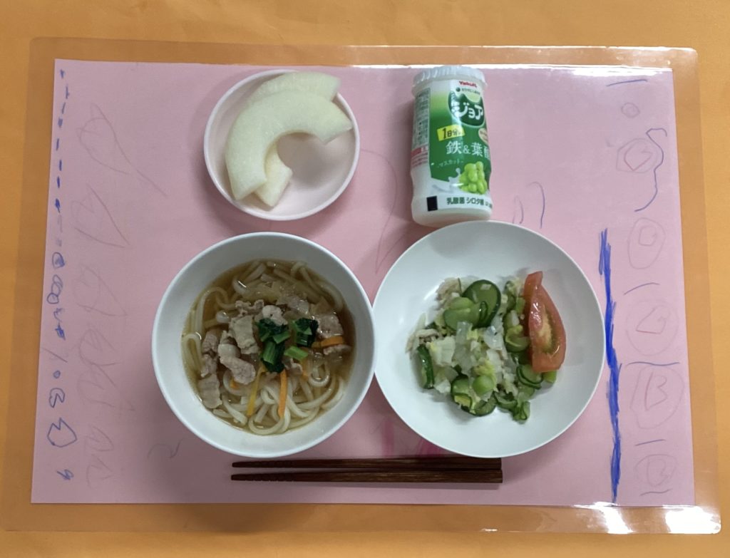 ホームきょうの給食 8/10 今日の給食 2024年8月10日 子どもたちが大好きな給食やおやつを毎日紹介しています! 【幼児食・乳児食】 昼食 • 肉うどん • フレンチサラダ • トマト • ジョア • 梨 🥰本日も暑い一日でしたが よく食べてくれました♪ 3時のおやつ • 牛乳 • 昆布おにぎり • 食べる小魚 10時おやつ(乳児) ・牛乳