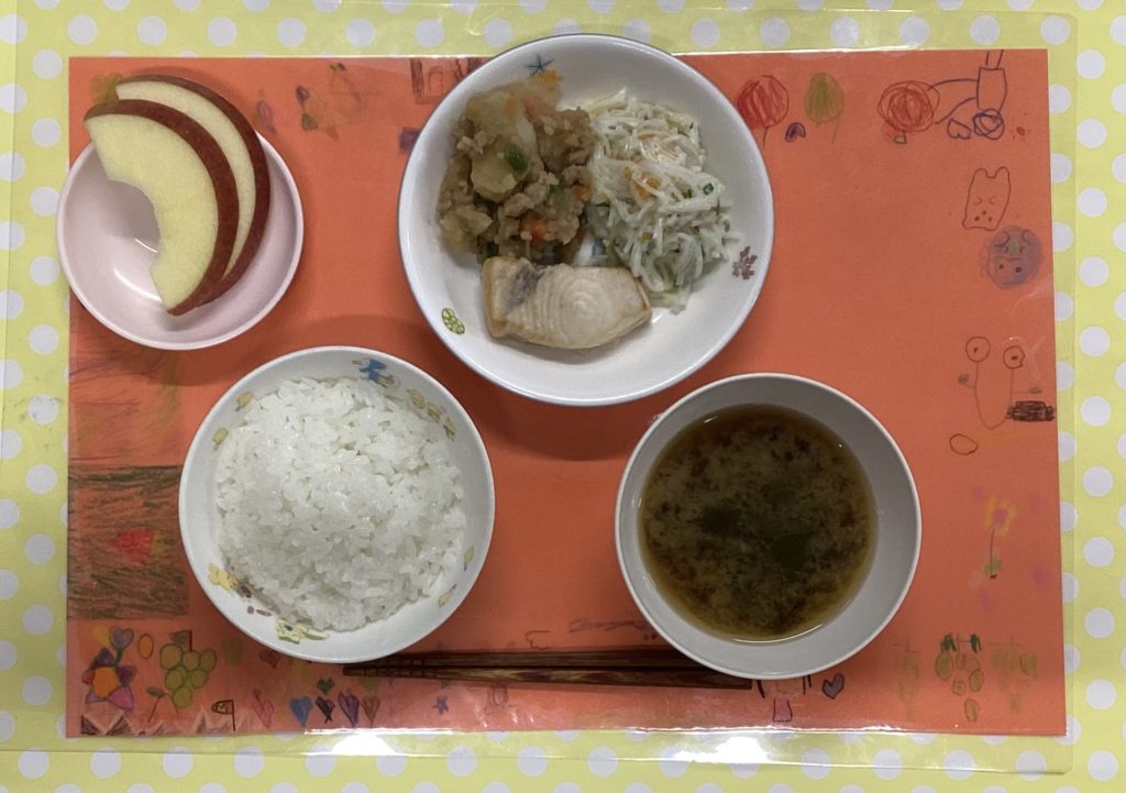 ホームきょうの給食 12/ 12今日の給食 2024年12月12日 子どもたちが大好きな給食やおやつを毎日紹介しています! 【幼児食・乳児食】 昼食 • ごはん • みそ汁 • かじきの竜田焼き • 肉じゃが • 春雨サラダ • りんご 🥰みんなお魚大好きです♪♪♪ 3時のおやつ • 牛乳 • 焼き芋 10時おやつ(乳児) ・ジョア
