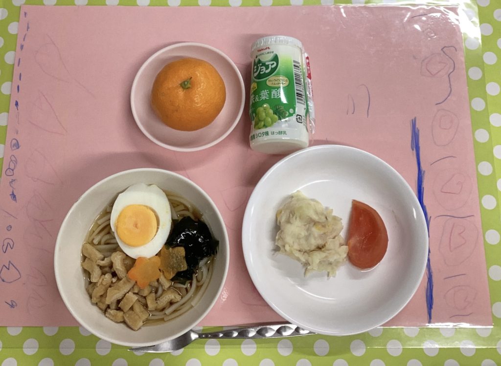 ホームきょうの給食 1/4 今日の給食 2025年1月4日 子どもたちが大好きな給食やおやつを毎日紹介しています! 【幼児食・乳児食】 昼食 • きつねうどん • ツナポテト • トマト • ジョア • みかん 🥰新年おめでとうございます💕今年もたくさん食べて下さいね♪ 3時のおやつ • 牛乳 • ふりかけおにぎり 10時おやつ(乳児) ・牛乳