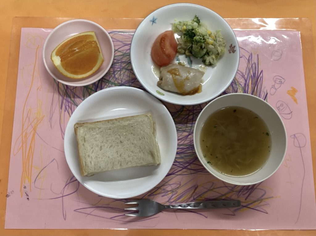 ホームきょうの給食 3/19 今日の給食 2025年3月19日 子どもたちが大好きな給食やおやつを毎日紹介しています! 【幼児食・乳児食】 昼食 • バターサンド • オニオンスープ • 鶏肉のマーマレード焼き • ブロッコリーサラダ • トマト • オレンジ 😘残食なしでした♫ 3時のおやつ • 牛乳 • きなこぼたもち 10時おやつ(乳児) ・牛乳