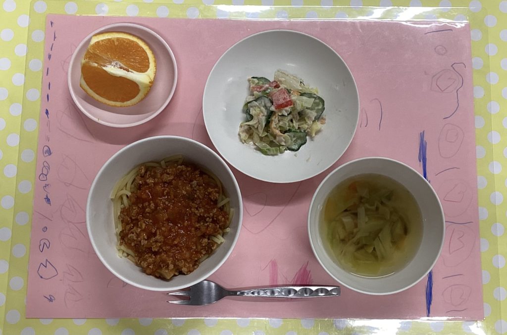 ホームきょうの給食 3/22 今日の給食 2025年3月22日 子どもたちが大好きな給食やおやつを毎日紹介しています! 【幼児食・乳児食】 昼食 • ミートソース • コンソメスープ • ツナサラダ • オレンジ 😘今日も完食でした♪ 3時のおやつ • ジョア • 鶏ぞうすい • 食べる小魚 10時おやつ(乳児) ・牛乳
