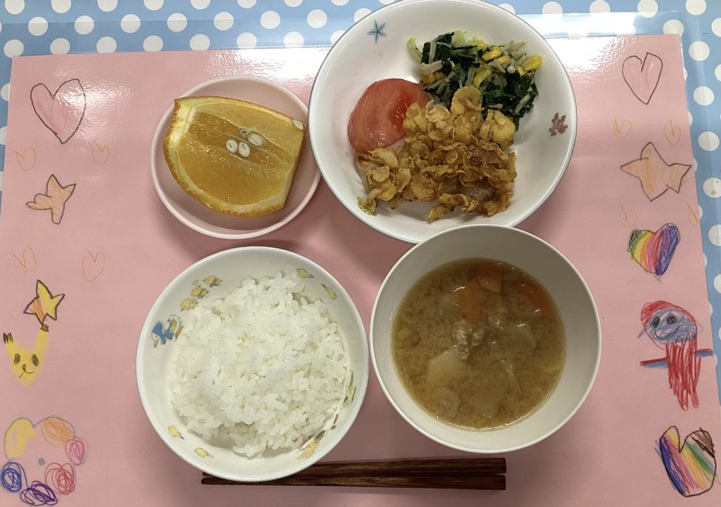 😊今日は野菜だくのメニューで、あまり箸が進まなかったようです……