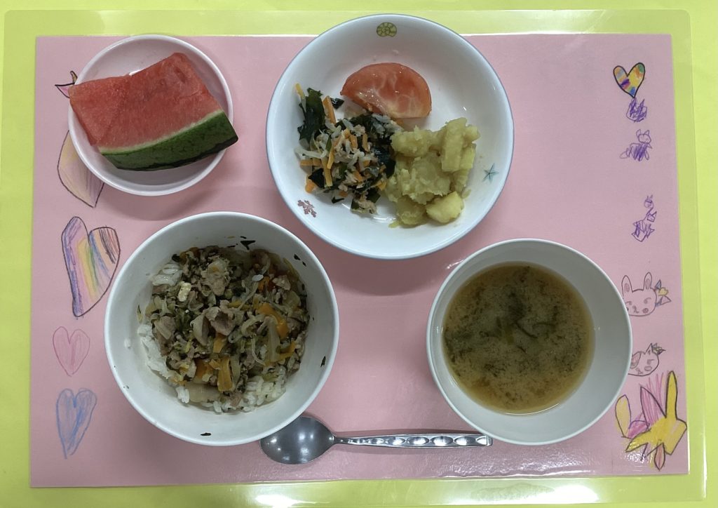 😊本日のすき焼き丼は春菊たっぷりで、大人の味でしたがみんなよく食べてありました😋