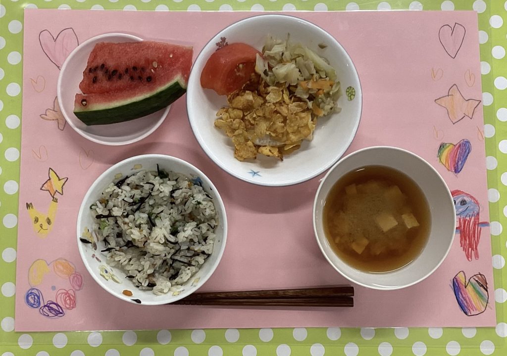 😊ひじきの入ったごはんは、苦手なようでしたが、おかずや汁物はよく食べてありました😋