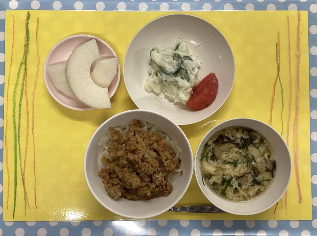 肉みそうどんは野菜たっぷりですが、みんなしっかり食べてありました。😋