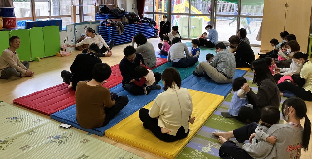 2月20日に乳児クラスを対象に親子体操を行いました。子どもたちと一緒に体を動かし、ご家庭でも出来る事を教えてもらいました。
