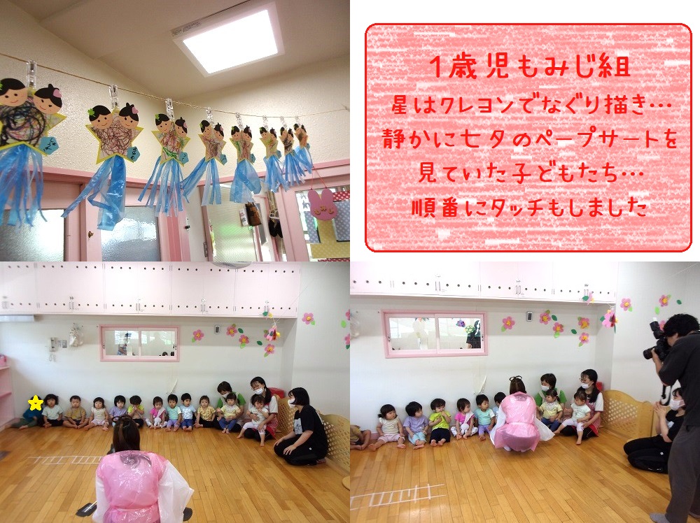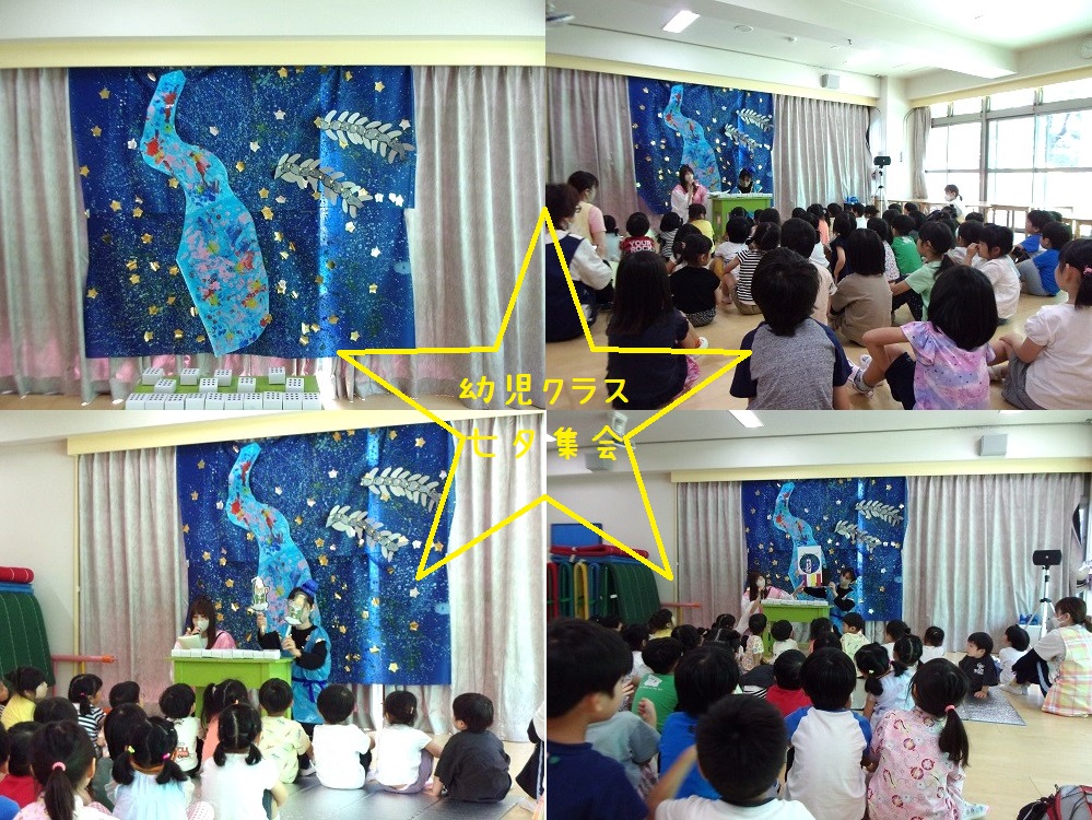 ホーム 七夕の様子🎋 2023年7月10日2023年7月11日 7月7日は七夕…。子どもたちのお願いを短冊に込めて全員分玄関に笹飾りしました。乳児クラスは各クラス毎担当の保育士が回り、ペープサートを見ながら♪七夕の歌を歌いました。幼児クラスはホールに集まり七夕集会。七夕にちなんだクイズ大会で盛り上がりました。そして…お待ちかねの「バイキング」。おいしそうな料理が並び、早く食べたい様子の子どもたち。3歳児クラスから順番に好きなものを取りに行き、おいしそうに食べていました。いつも少食の子も、この日は沢山食べたり、普段はあまり食べないというブロッコリーも良く食べていました。子どもたちの嬉しそうな姿に職員一同幸せな気分で見守っていました。