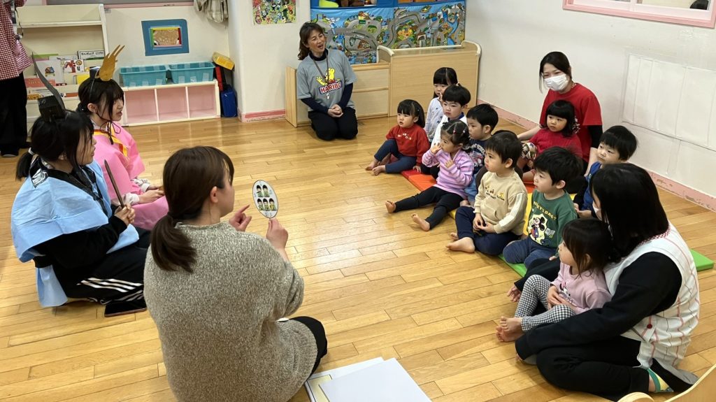 ホーム ひなまつり🎎 2026年3月5日 3月3日はひなまつり…。雛飾りは何の様子を表しているかご存じでしょうか?子どもたちにもお話しましたが、結婚式を表しています。7段飾りでは一番下の段にお嫁入りの道具が飾られていますよね…。保育園では職員がお内裏様とお雛様に扮してお話をしました。 0歳児 1歳児 2~5歳児ひな祭りのお話 間違え探しゲーム!何かが違うお内裏様とお雛様…