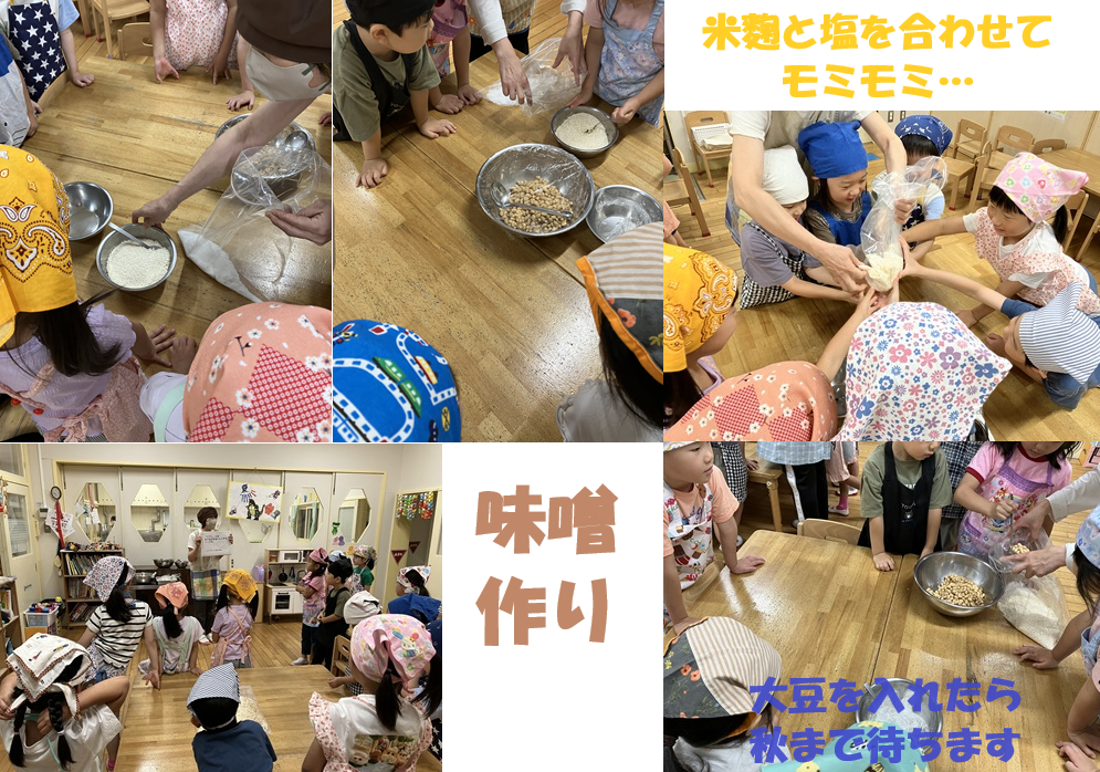 今日は「伝統食作り」で「味噌」の仕込みをしました。袋の中に、米麹・塩・煮大豆を入れてモミモミ…。豆の良い香りが漂っていました。出来上がりは秋🌾お楽しみに…