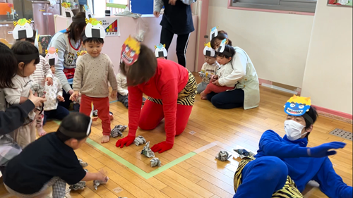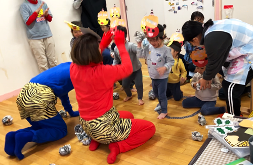 ホーム 鬼は外~福は内~👹 2025年2月10日 2月2日は節分…と言う事で保育園では3日の豆まきを行いました。保育園に来るのは優しい鬼…。皆の心の中にいる「泣き虫鬼」「ヤダヤダ鬼」等を「おには~そと!」と言いながら一生懸命豆をまきました。(新聞紙を丸めたもの) 0歳児 1歳児 2歳児 幼児
