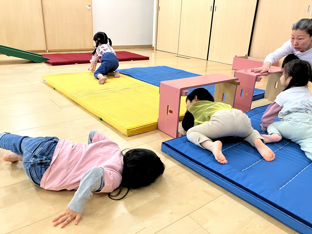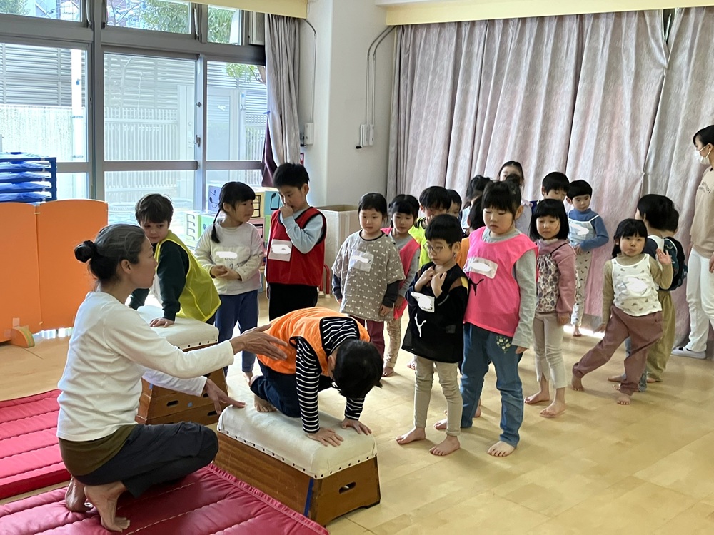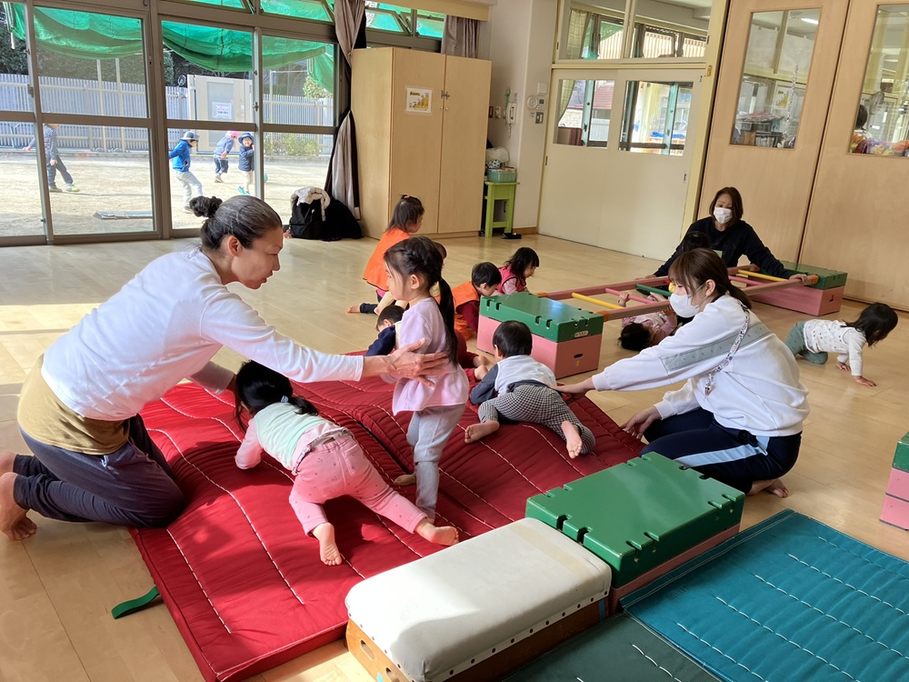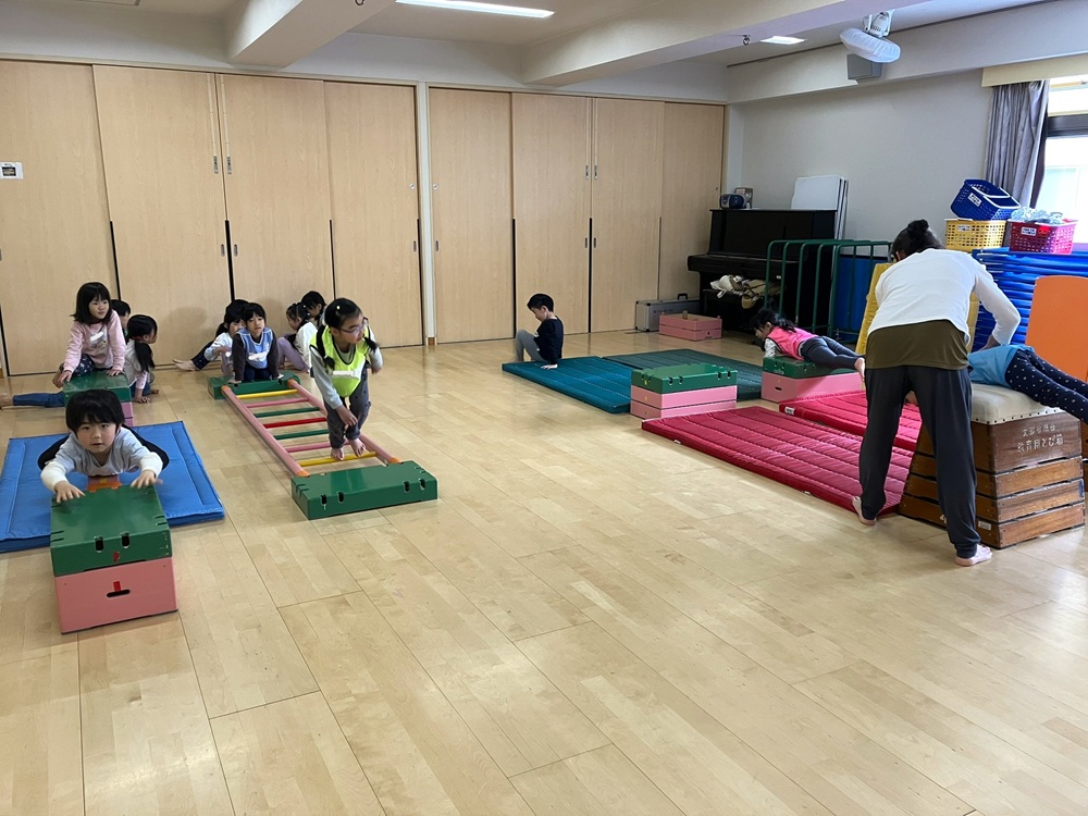 今年度は「運動遊び」をテーマに子どもたちが体を使ってワクワクするように遊べるような遊具を購入し、楽しんでいます。月に1度外部の講師に来ていただき、年令に合った体づくりを教えていただいています。段階を踏んで体づくりをする事の大切さも学べています。