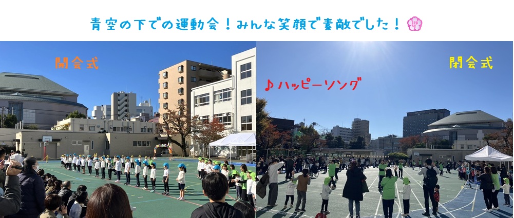 11月22日(土)に、お隣の仰高小学校をお借りして、運動会を行いました。晴天に恵まれて青空の下で笑顔いっぱいの子ども達!頑張っている姿を保護者の方に観ていただくことが出来て良かったです。