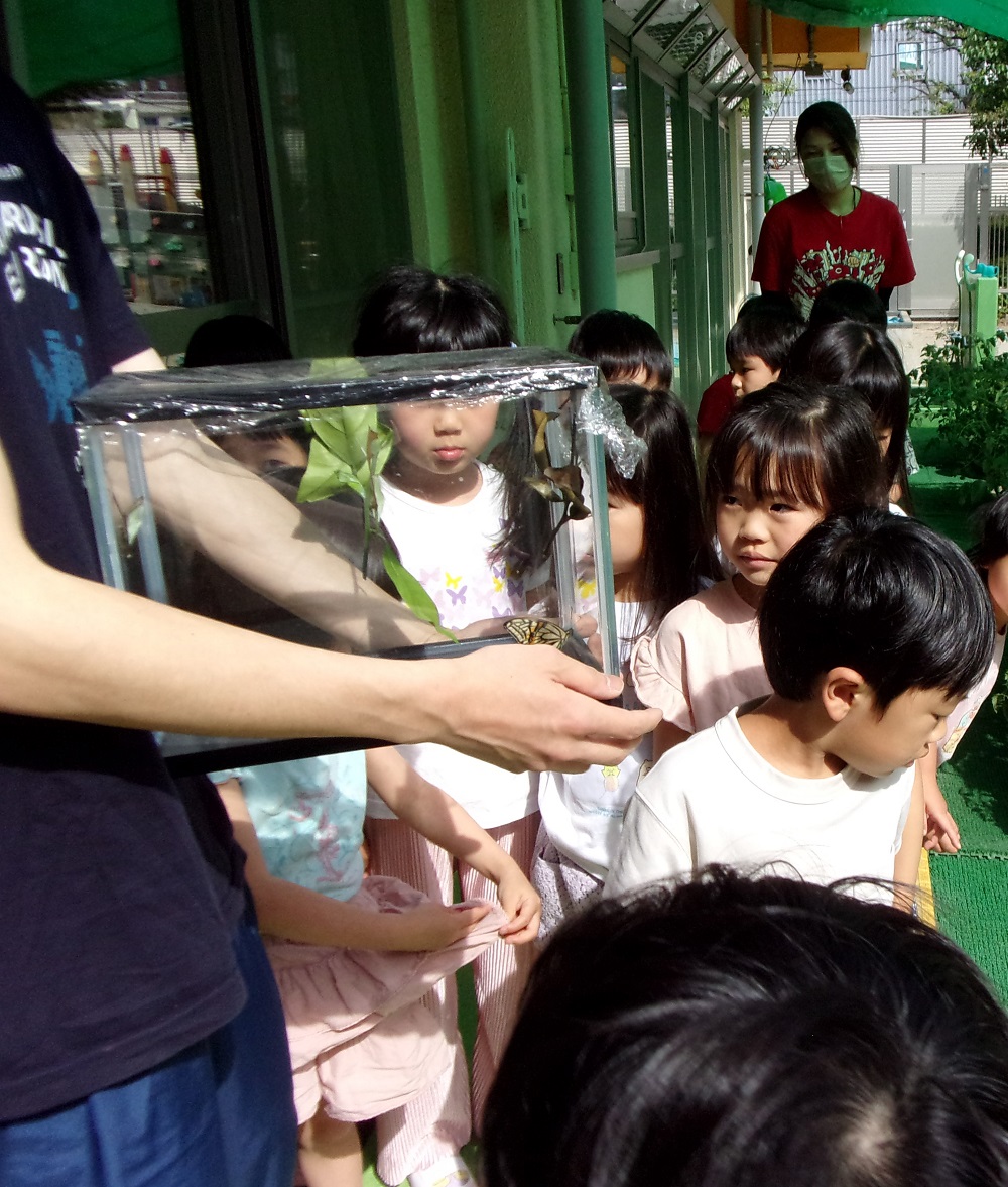 ホーム ちょうちょうになったよ🦋 2022年5月30日2023年3月1日 沢山のクラスで育てているちょうちょう。本日第1号が無事にちょうちょうになりました。今朝「もうすぐ羽化しそうです!」と5歳児担任から報告を受けていて、午睡に入った頃「ちょうちょうになりました!」と…。ベットに入っていた子どもたちを起こしてみんなで見ました。「わぁ~よかったね」とうれしそうな子どもたち。午睡後飛び立つ習慣をみんなで見守りました。(飛んで行ったちょうちょうは写真に収められませんでした) そして、キュウリが良く実ってます!今年はたくさん食べられそうです。 羽化したばかりのちょうちょう 羽を広げたちょうちょう お別れの時 中々飛び立ちません